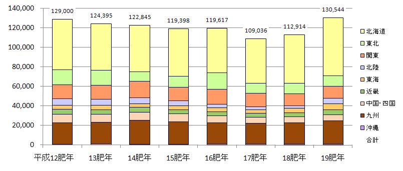 | 北海道 | 51,910 | 47,888 | 47,500 | 48,931 | 45,704 | 45,627 | 49,351 | 59,435 |